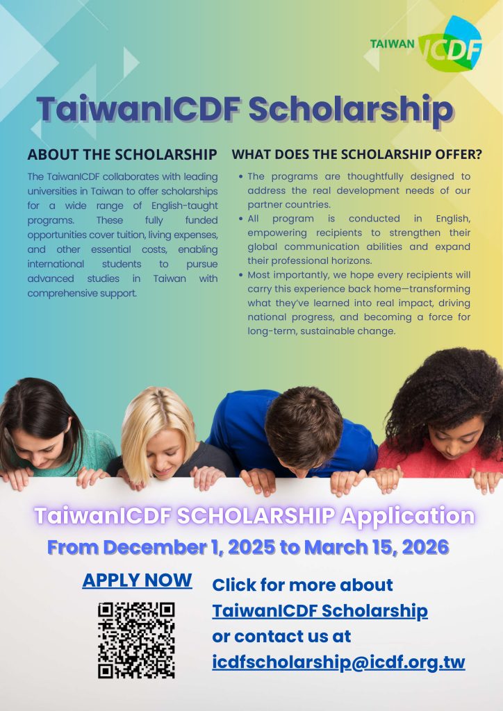 The International Higher Education Scholarship Program, central to the TaiwanICDF, offers full scholarships to outstanding students from partner countries to pursue higher education in Taiwan through collaborations with local universities.